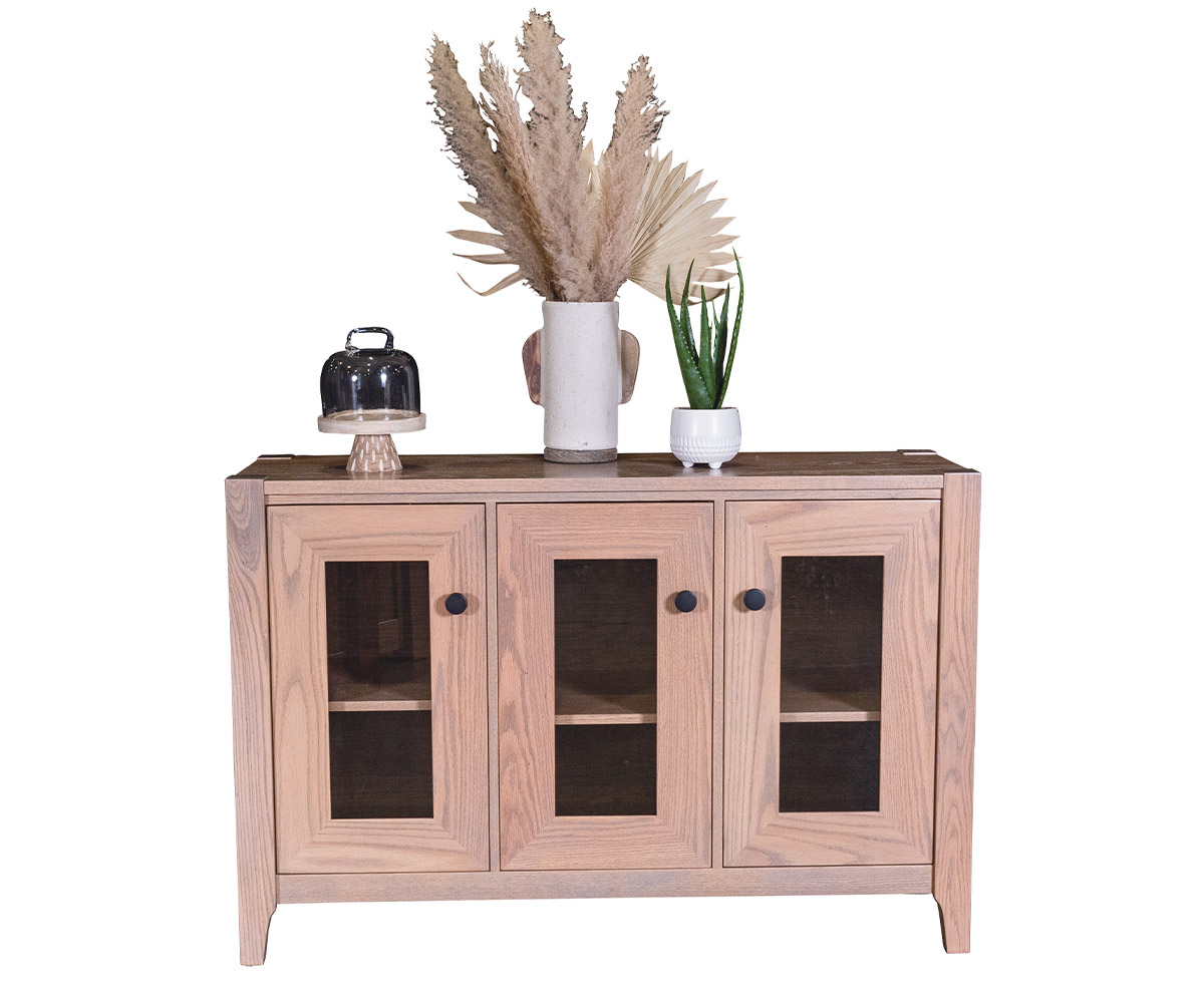 Features: • 1 adjustable wood shelf • Fixed shelves in base • Full-length flat glass doors